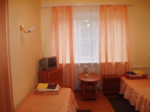 В номере: телевизор, шкаф, 2 тумбочки, 2 кровати