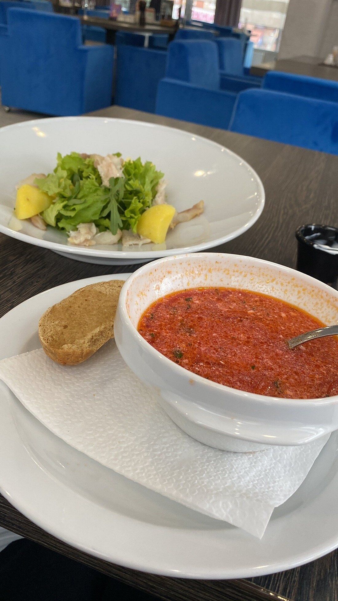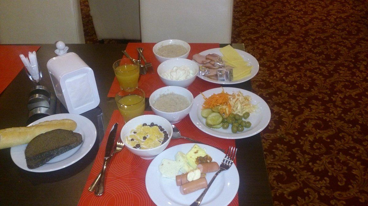 Ежедневно для гостей отеля «Турист» сервируется завтрак по системе «шведский стол». На столах у отдыхающих вкусные первые и вторые блюда из мяса и рыбы, молочной продукции, всяческие нарезки и напитки. Также на территории расположен кафе-бар. На расстоянии 450 метров от отеля гости могут посетить рестораны Villa Chento и Круассан-кафе.