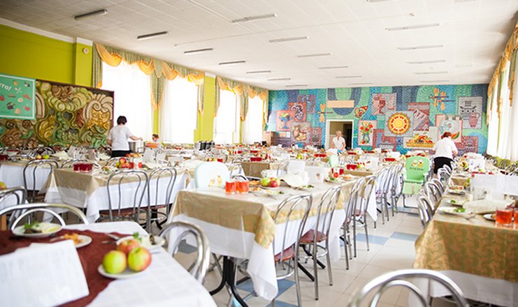 Для удобства отдыхающих с маленькими детьми в столовой предусмотрены детские столы-стулья.