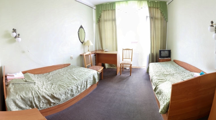 В номере: Двуспальная или две раздельные кровати, прикроватные тумбочки, светильники, стулья, журнальный столик, комод с зеркалом, электрический чайник, набор посуды, телевизор, холодильник, телефон.