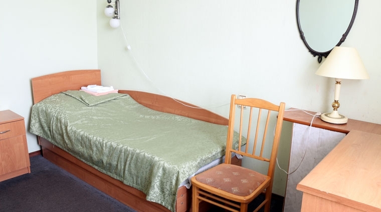 В номере: 1,5 спальная кровать, прикроватная тумбочка, светильник, стул, кресло, журнальный столик, туалетный столик с зеркалом, электрочайник, набор посуды, телевизор на тумбе, холодильник, телефон, кондиционер.